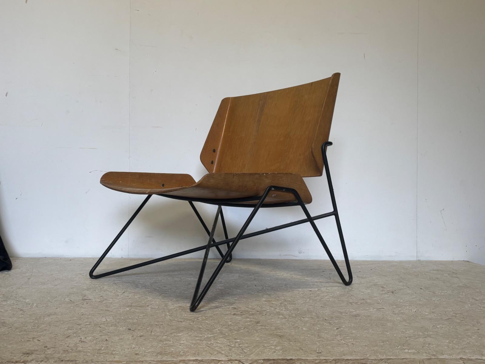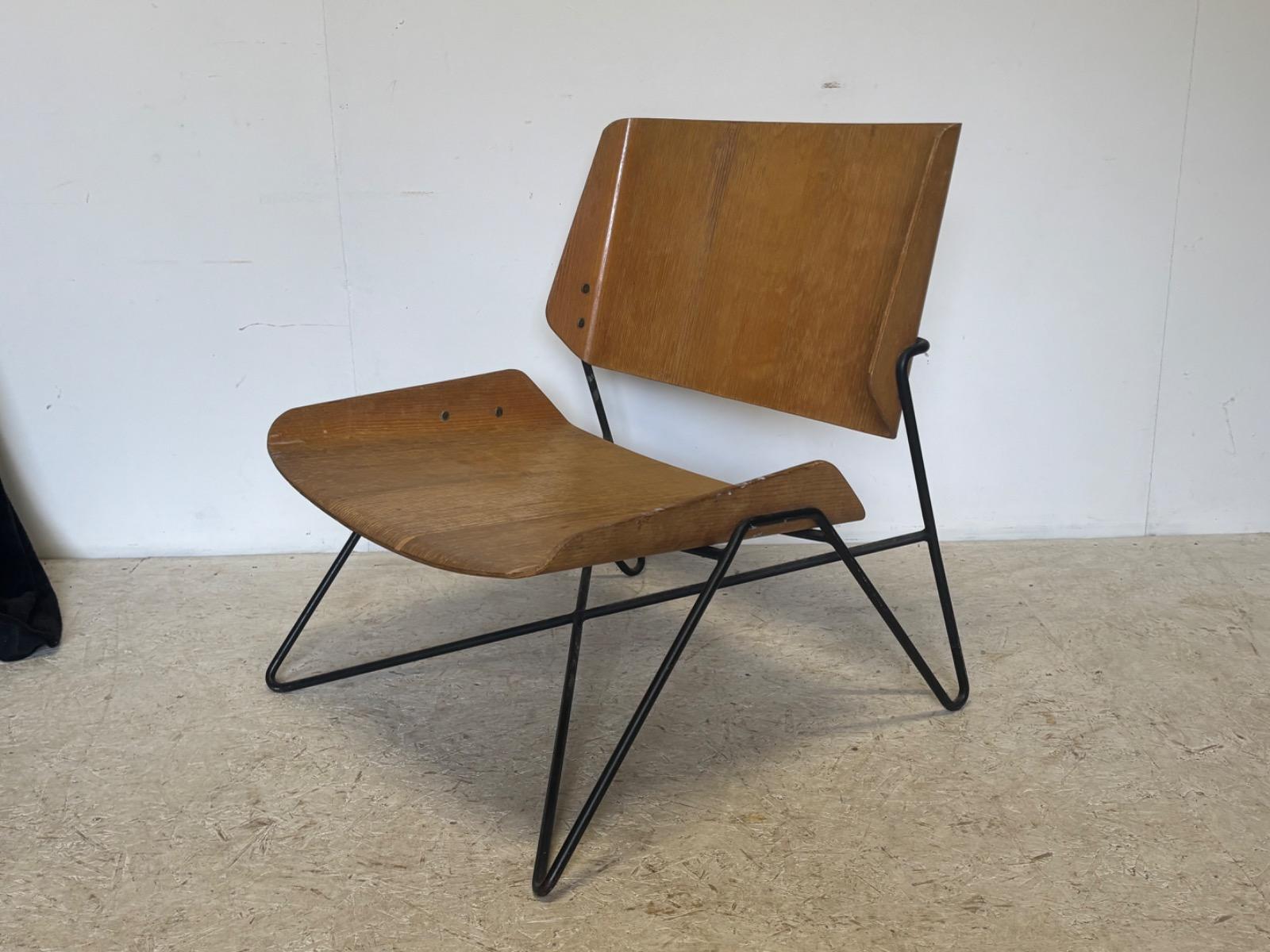 Janine Abraham et Dirk Jan Rol . Chauffeuse SRA1 acajou contreplaqué moulé , metal laqué . edition sièges temoins .