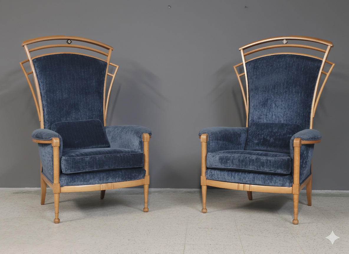 Paire de fauteuils italien de grande qualite . Travail vers 1980