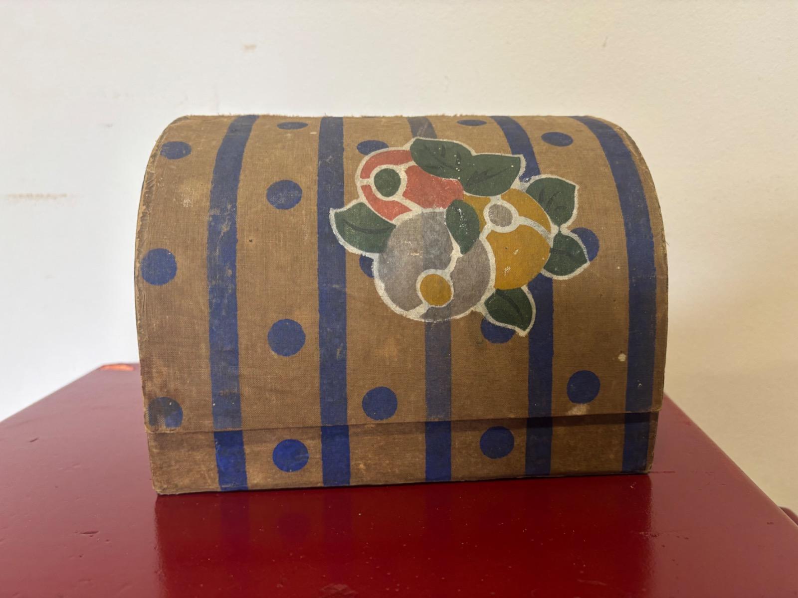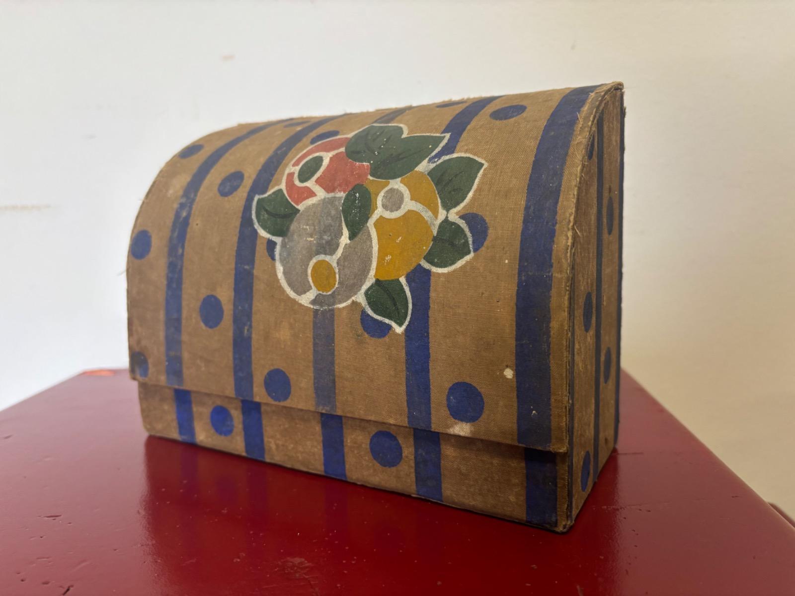 Coffret gaine de tissus peint vers 1920. Dans le gout de paul poiret