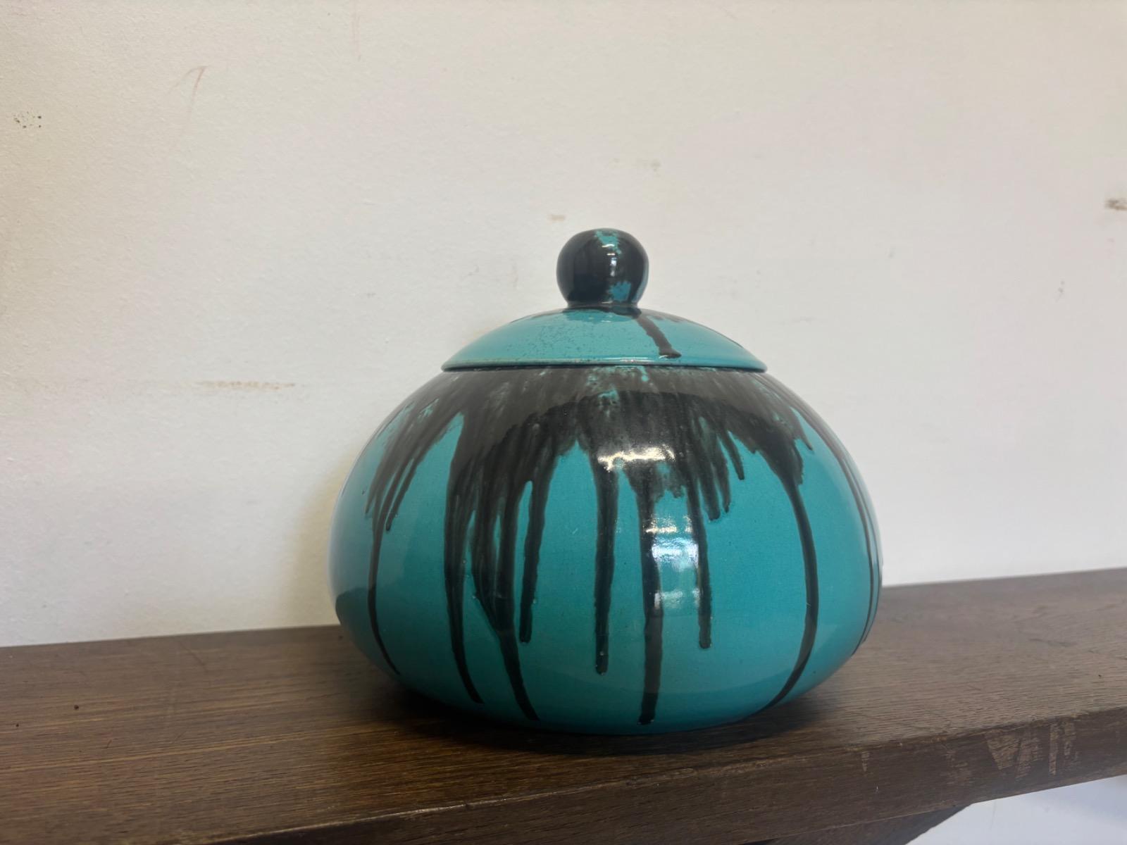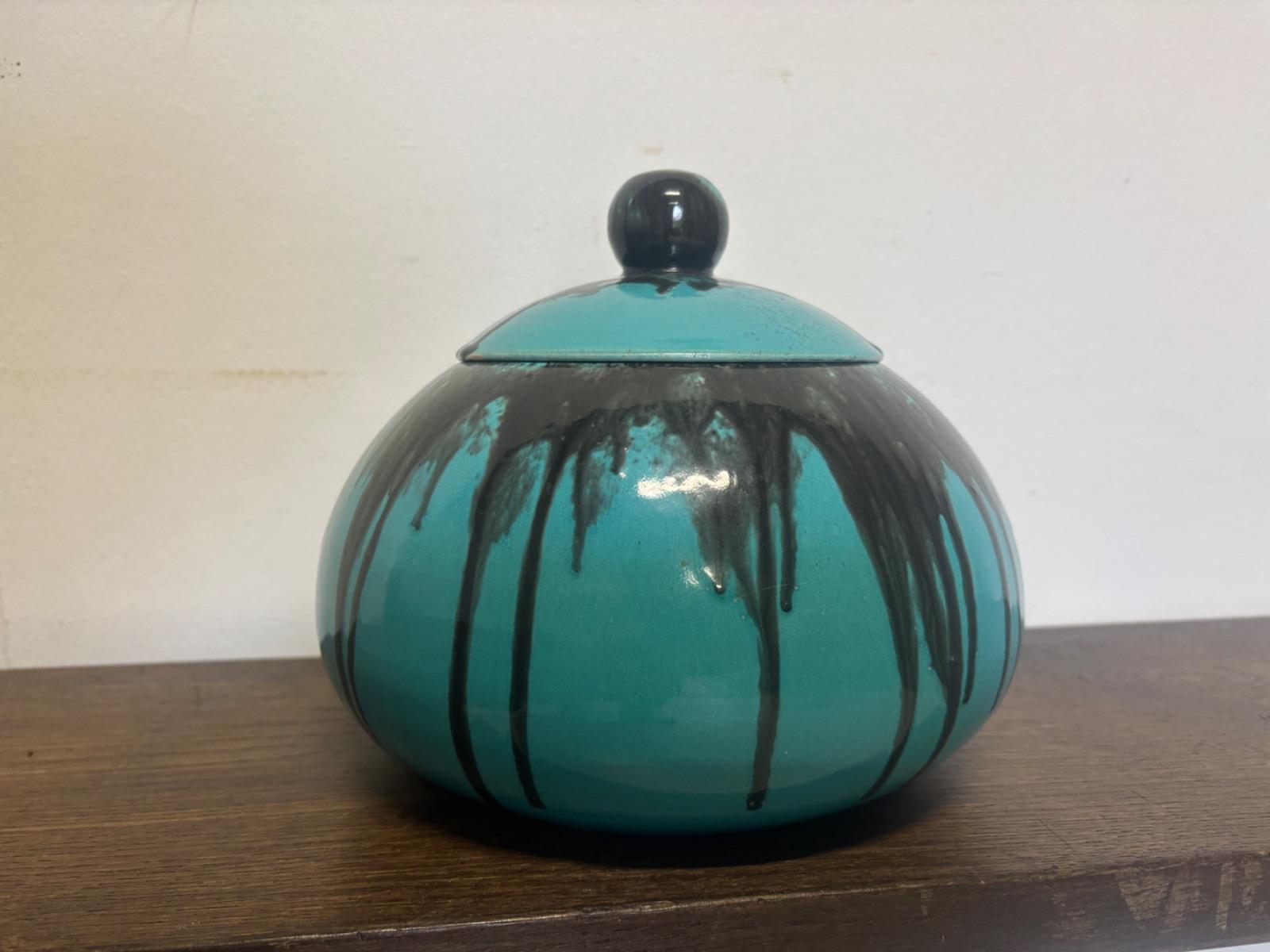 Primavera editeur . Boite couverte en ceramique emaillée a decor de coulures . France vers 1930