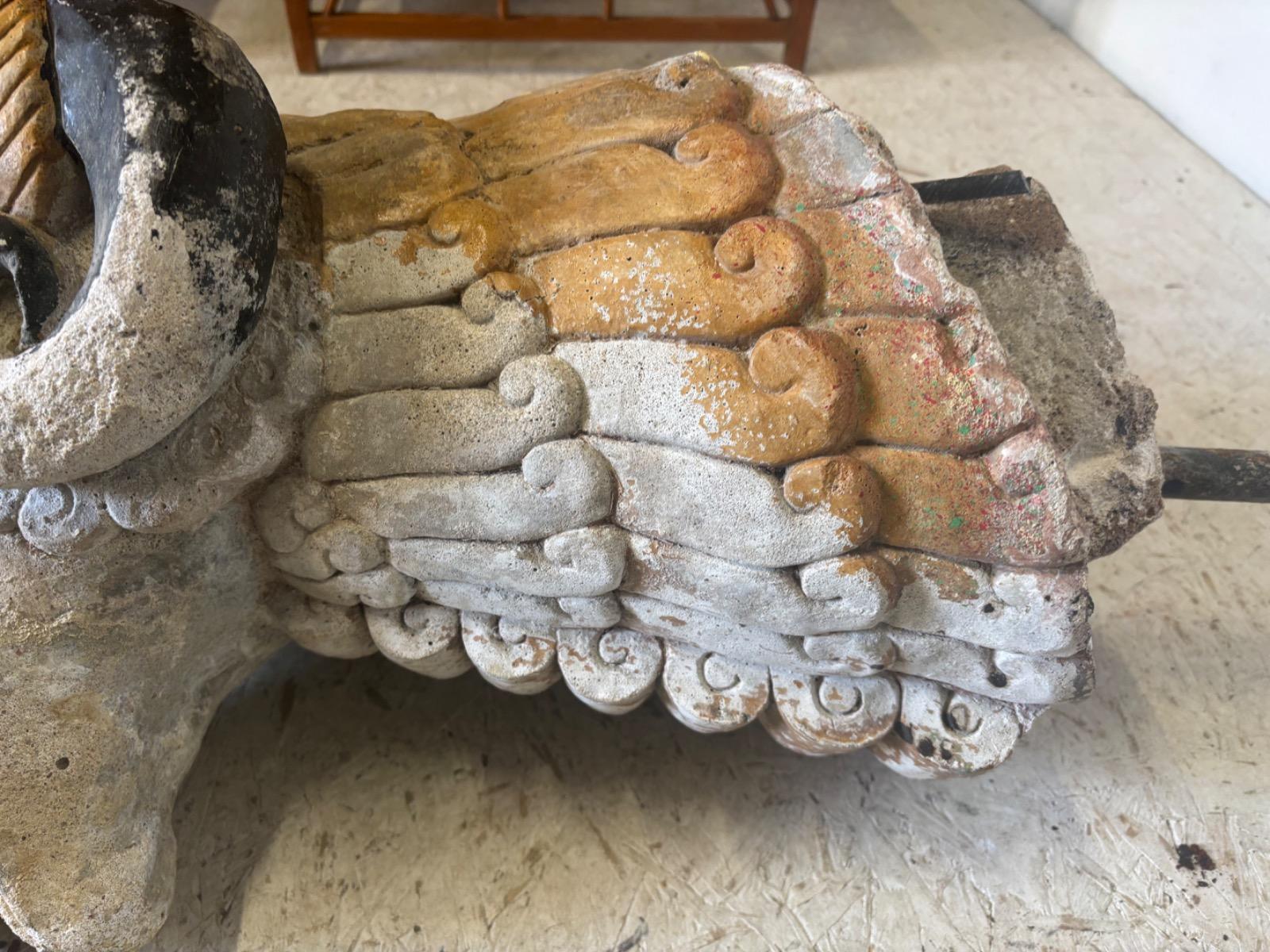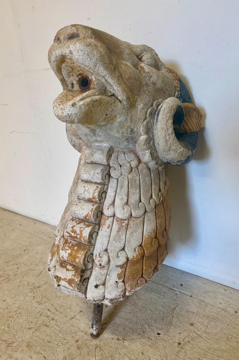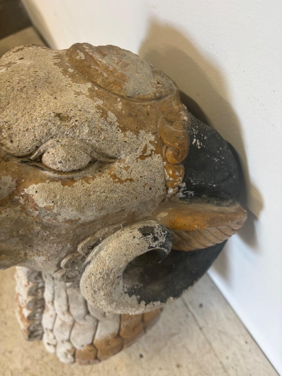 Rare gueule de fontaine en pierre . Travail art deco . France circa 1930