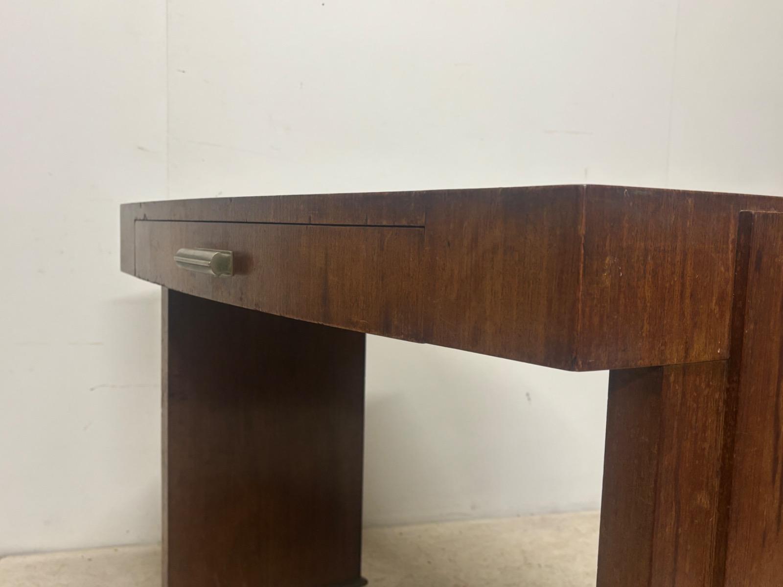 Maison Dominique petit bureau en palissandre et bronze nickele vers 1930