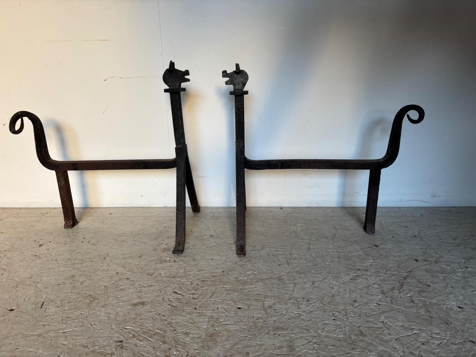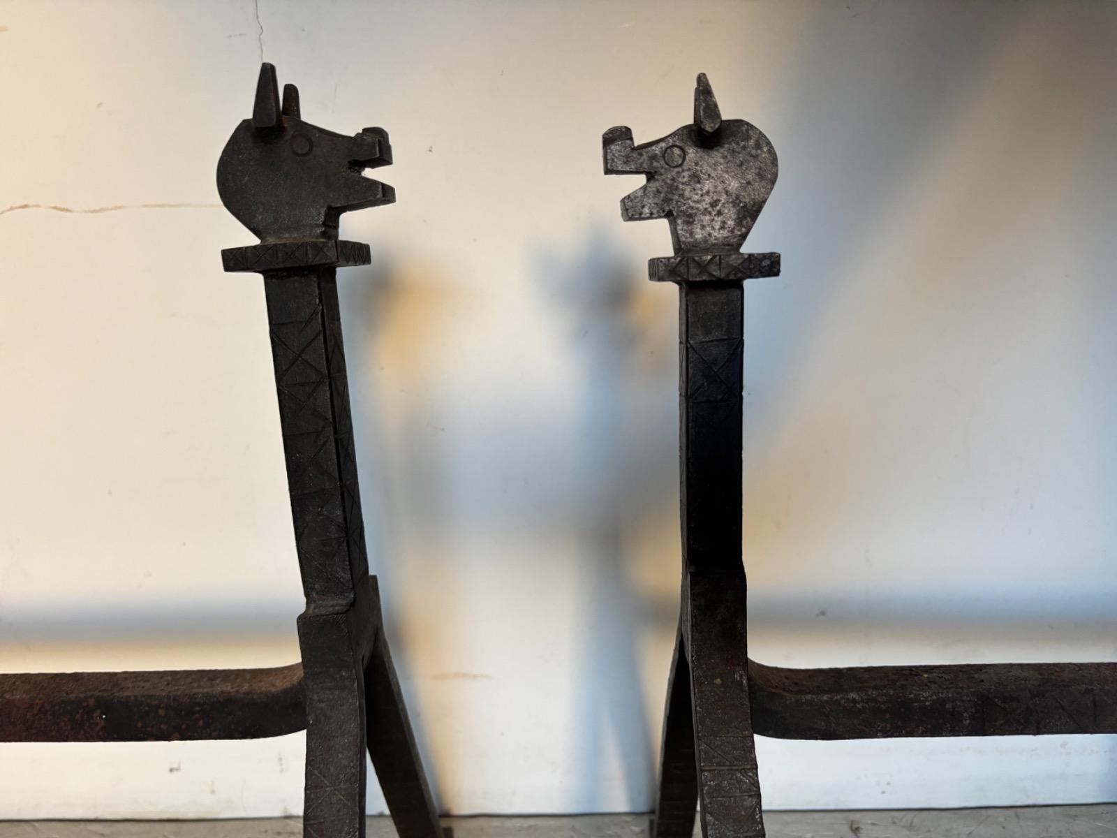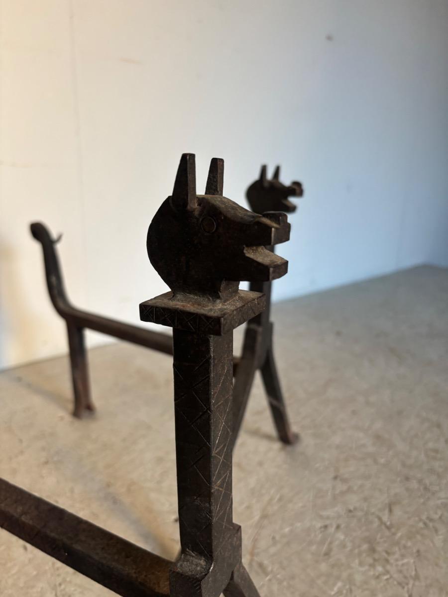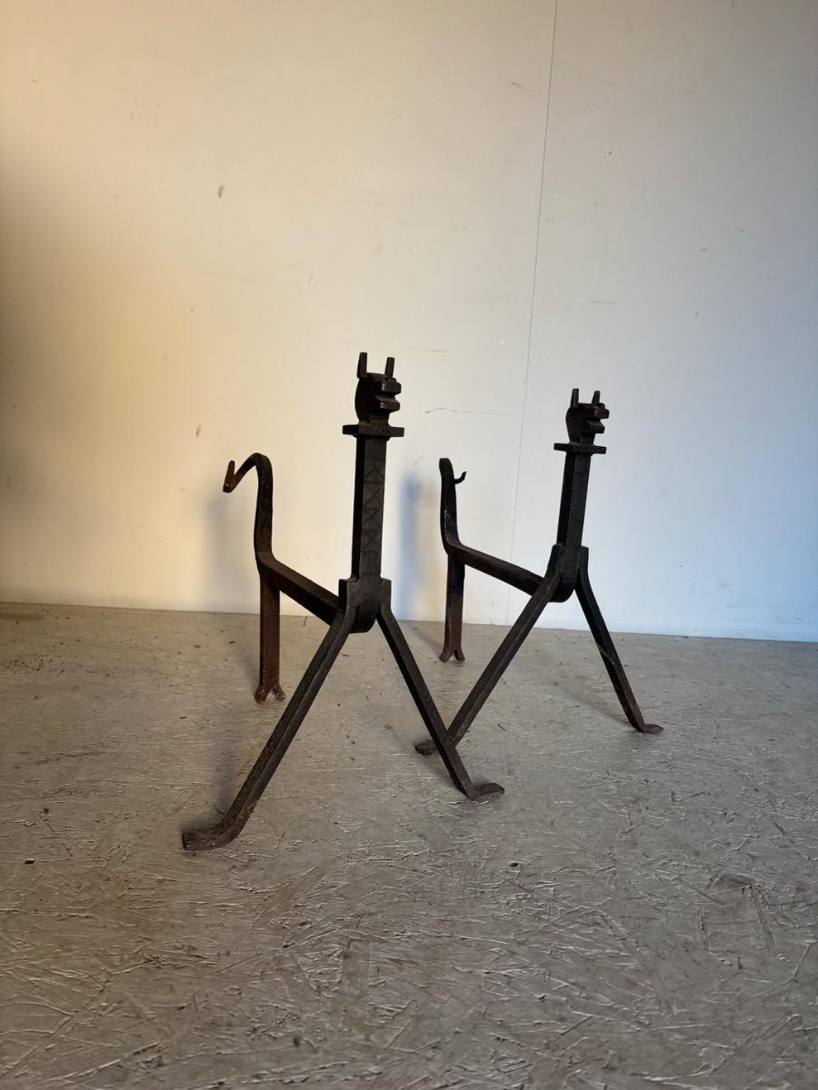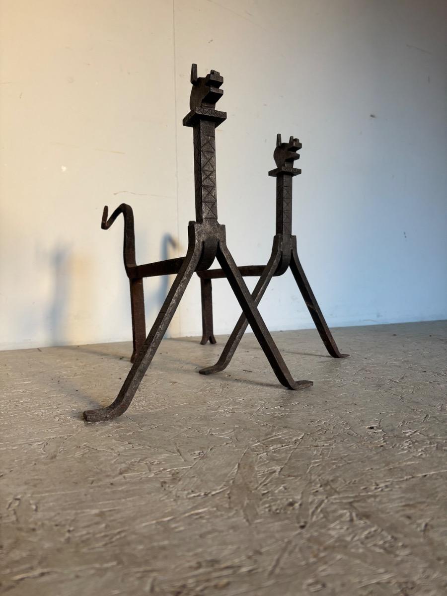 Paire se chenets anthropomorphe en fer forge vers 1950