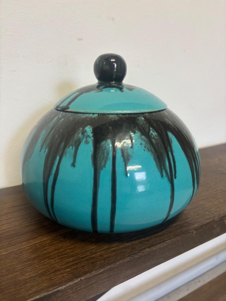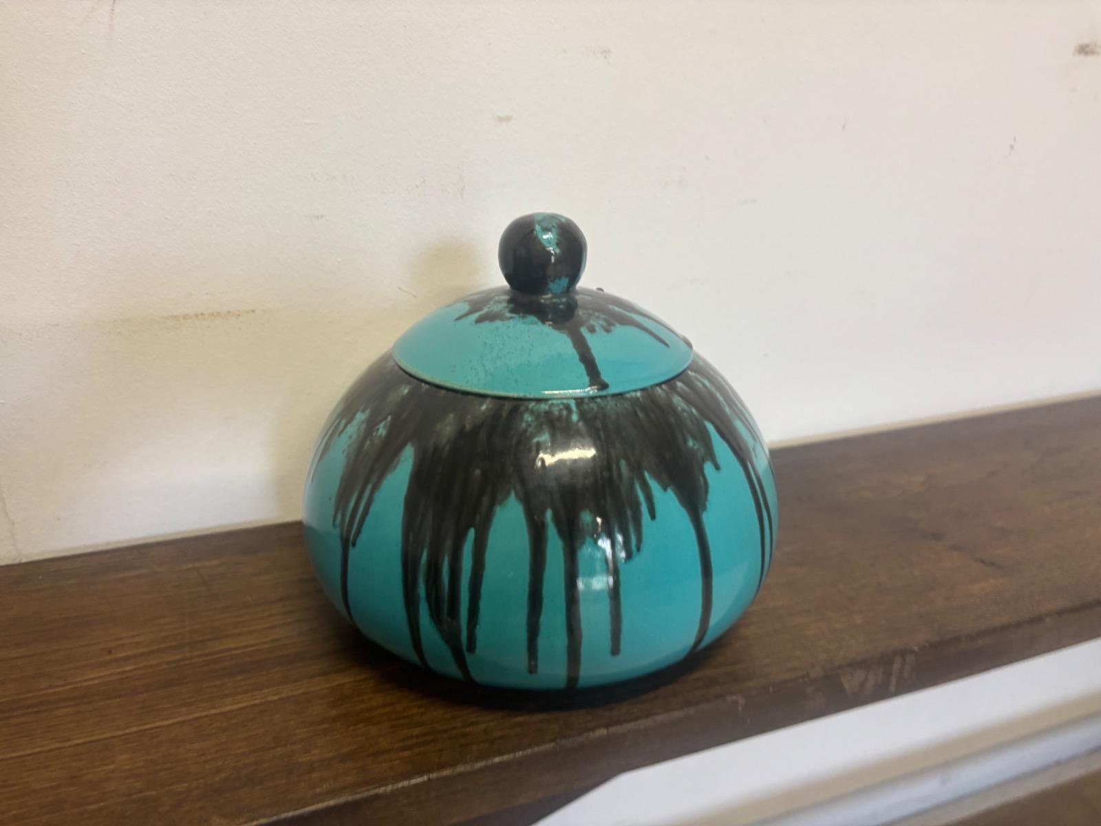 Primavera editeur . Boite couverte en ceramique emaillée a decor de coulures . France vers 1930