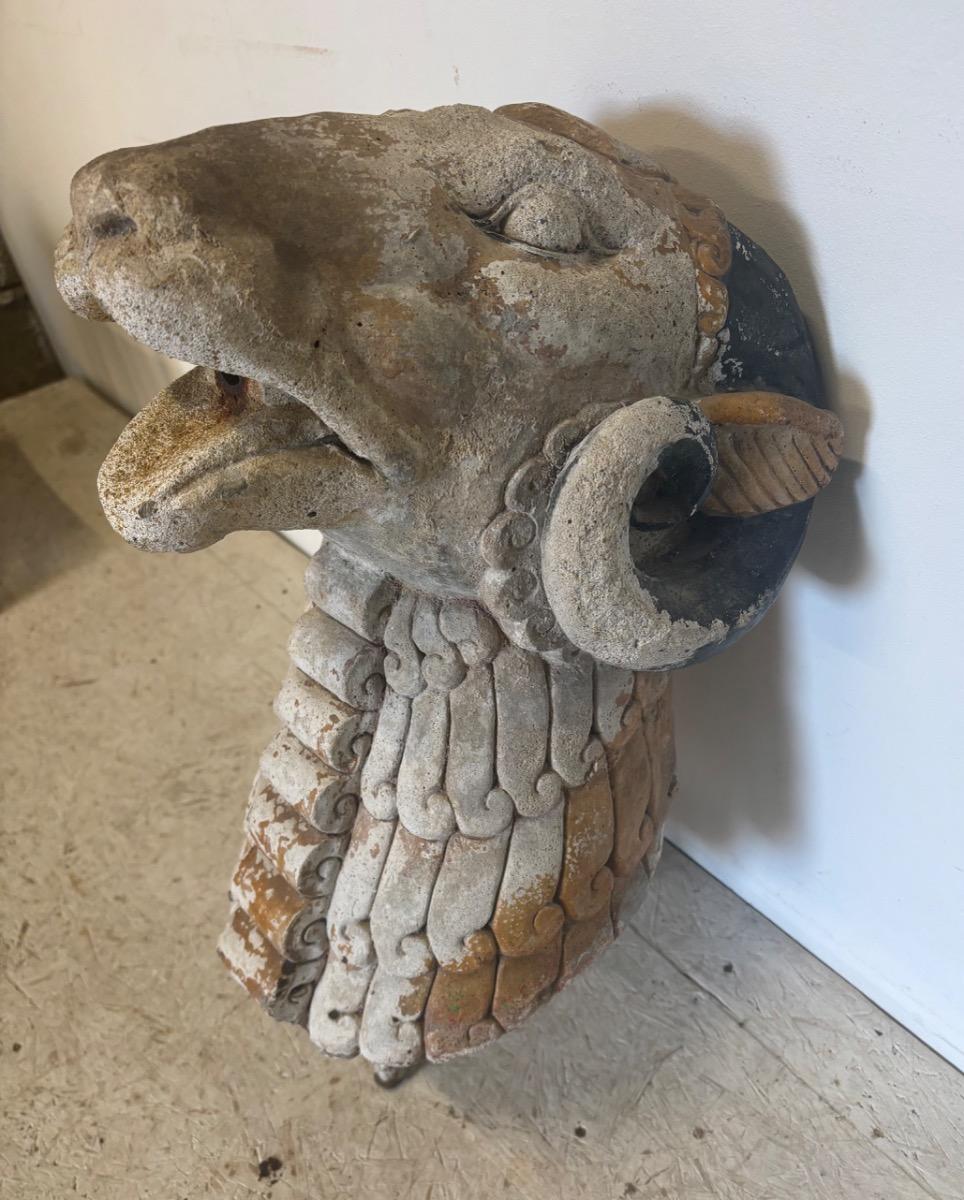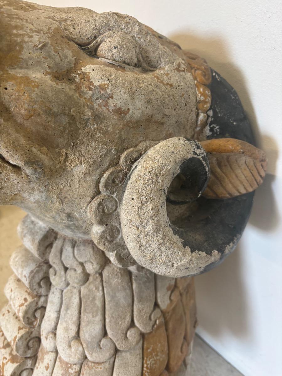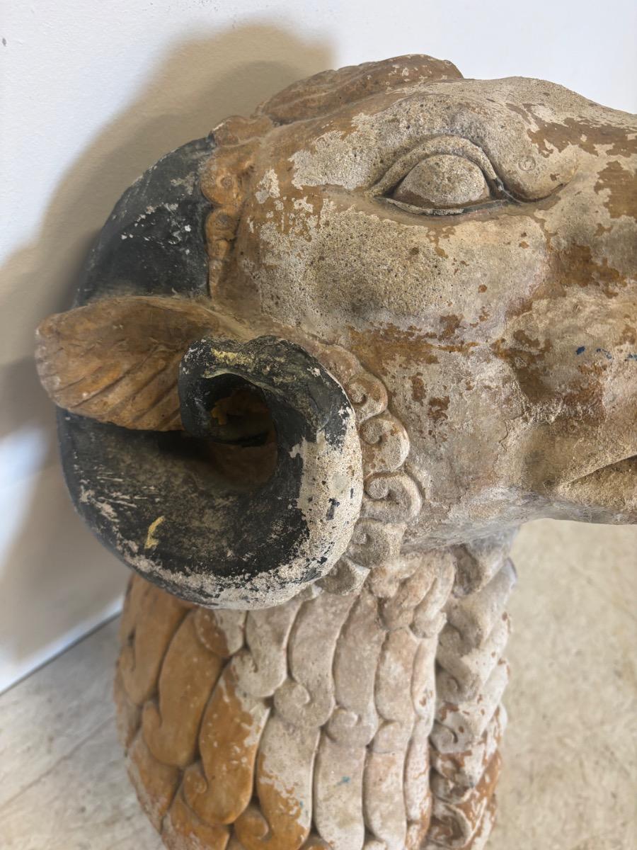 Rare gueule de fontaine en pierre . Travail art deco . France circa 1930